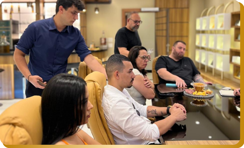 Almoço especial com mentoria dos Irmãos Pessamilio sobre layout e vendas.